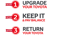 - Keep your Toyota – simply pay the outstanding balance (including the final payment). Toyota Finance can help you refinance the balance of your car loan if you don’t have the cash on hand (conditions apply).